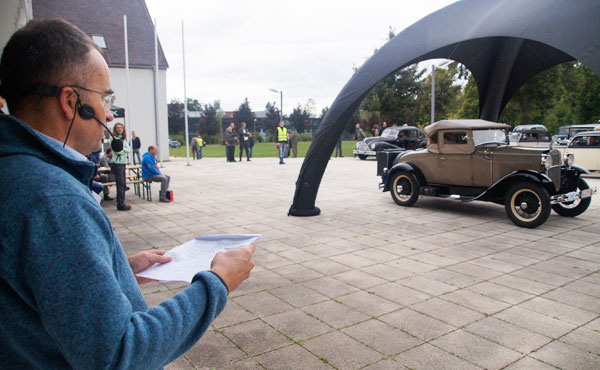 Einen einzigartigen Begleiter auf seinen Oldtimer-Fahrten hat Bernhard Reinhold aus Meerane. Verschmitzt schauten Teilnehmer und Zuschauer auf oder besser in sein Auto. Denn auf dem Beifahrersitz seines 1936er Ford Köln Y hatte sein deutscher Schäferhund Ben Platz genommen. „Was will ich ihn allein zu Hause lassen? Ben ist erfahrener Co. Schon im Trabant, in einem Mercedes SLK und nun gier. Gewissermaßen gibt er mit Gebell den Startschuss. Nach gut hundert Metern ist er am Genießen. Nur Fahrtenbuch kann er eben nicht lesen“, bemerkt Reinhold verschmitzt.